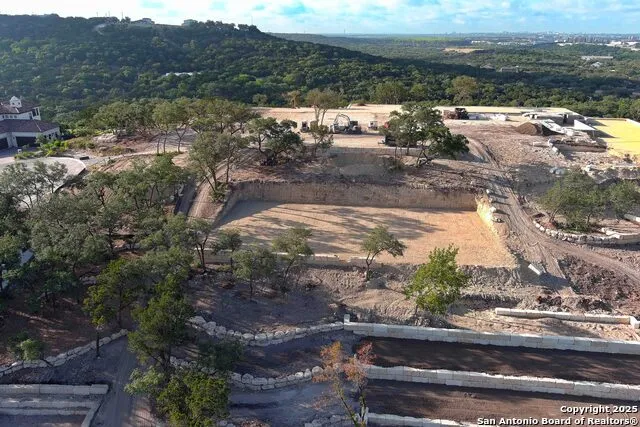ENDLESS VIEWS * REMARKABLE LOCATION * EXTRAORDINARY ACQUISITION * STARRY NIGHTS * ULTIMATE PRIVACY * KISS THE SKY * So many adjectives describe this amazing 9.4+ ACRE improved hilltop building site within the gates of The Dominion. 360 degree views are yours to enjoy on this fabulously unique building site that hugs the skyline of San Antonio and the Texas hill country. Approach your personal estate through private gates and then gently curve around the hilltop to your front door while enjoying terraces of plantings, gardens and breathtaking views at every turn. Build your gorgeous custom home and land your helicopter (subject to FAA requirements) on its own Helipad just below the homesite, or add your tennis or pickleball court just beneath the million dollar Keith Zars multifaceted infinity pool and lavish outdoor living spaces. If desired, add a casita, put in multi-car garages or plant an olive tree orchard as the sky is literally the limit with this unique property. Every inch of this property has been planned for you to achieve absolute perfection in aesthetics, efficiency and sustainable use without the stress of the planning phase. The infrastructure is in place, lines are buried, pool started, additional water source available, house plans drawn by renowned architect Oscar Flores with a couple of examples in styling and plenty of ability to modify. Call for further information and to meet on top of the world!